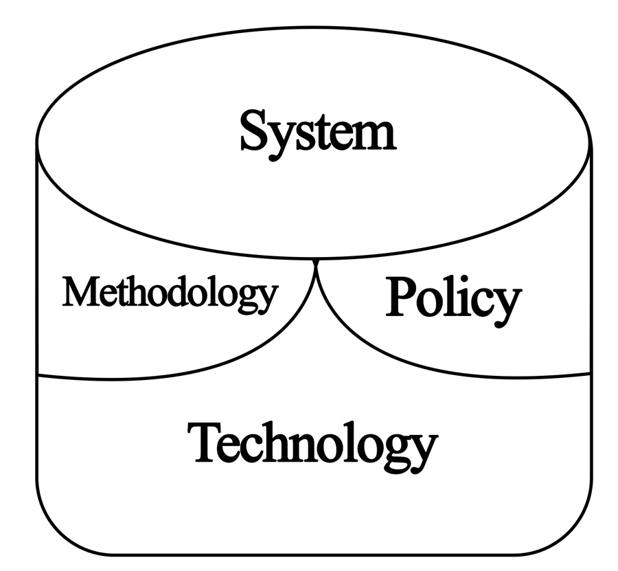 In the above figure, we can see the technology as mind and the system as the major organ of the body. These two, methodologies and policies are subsidiary organs to energize the technology and the system. Let’s divide the four components into various contents.