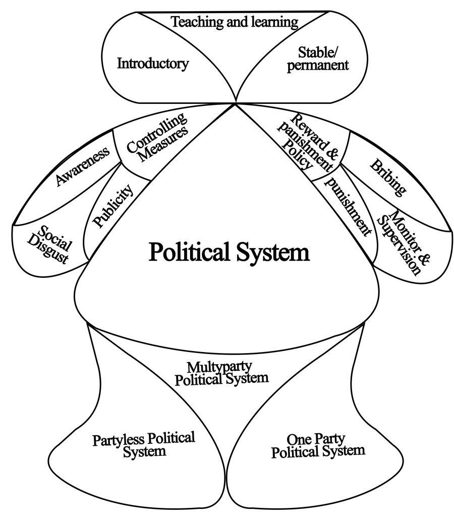The above figure visualize a human body. The teaching and learning activity in the mind is received by the political system and handles the daily matters. So, established as a main organ of body, the political system should function smoothly in the balanced manner. Therefore, if political system functions well, the whole body may perform more. That’s why, if the four components of anticorruptology i.e. teaching learning technology, controlling methodology, reward and punishment policy and political system are competent and implementable, anticorruptology will become a complete discipline.