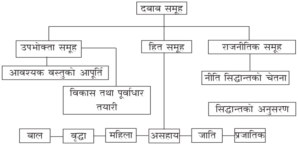 माथि उल्लिखित दबाब समूहलाई तलको चित्रतालिकाबाट पनि हेर्न सकिन्छ ।